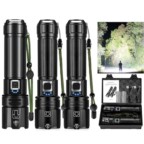 La LumenX Pro™ es la linterna táctica de alta potencia que transforma la noche en día. Con una construcción resistente y un resplandor cegador de 20.000 lúmenes, cabe fácilmente en la mochila, en el kit de emergencia o en la guantera del carro.